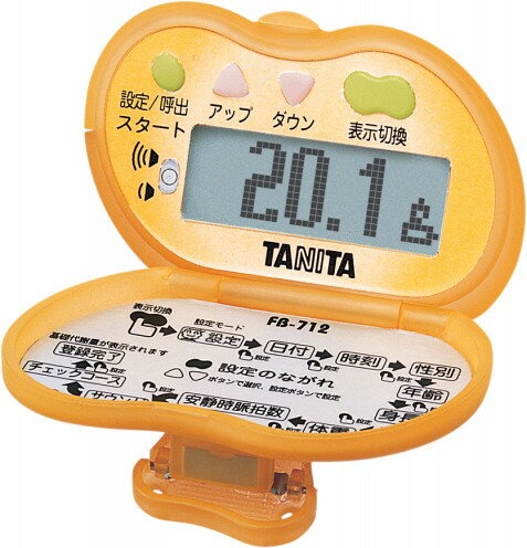 タニタTANITA脂肪燃焼量付き歩数計FB-712価格: 2,520円レビュー評価: 0.0 レビュー数:0 タニタの製品です。効率よく歩いて脂肪燃焼させたいという方におすすめです。歩行ピッチ音を出してウォーキングをリードします。(イヤホンは使用しません。)時計機能付き。<仕様>最大表示最小表示歩 数 :最大99999歩 最小1歩消費カロリー:最大9999kcal 最小1kcal脂肪燃焼量 :最大9999.9g 最小0.1g 電 源CR2032コイン形電池1個 寸 法本体巾71x奥行17x高さ46mm*クリップを除く 質 量約40g電池含む 付属品電池 製造国中国 脂肪燃焼に効果的な歩行ピッチを音で知らせます |